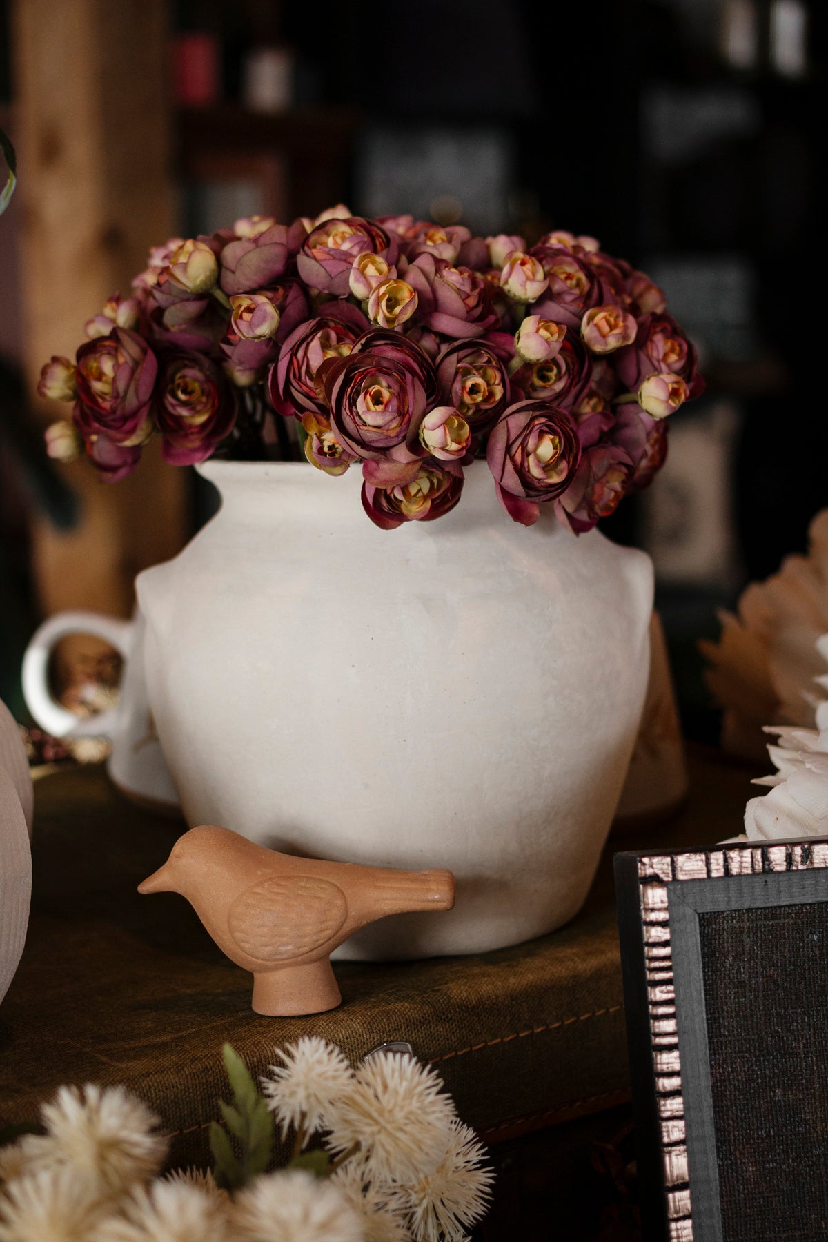 A small terracotta bird with a simple, hand-formed shape and warm clay tone. Subtle and grounded, it brings a natural, collected feel to shelves, desks, or windowsills.