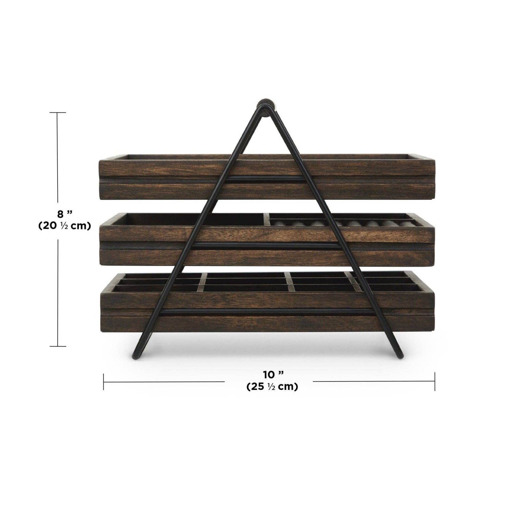 Designed to bring calm to your daily routine, the Terrace Jewelry Tray features three stacked wooden trays that slide out for easy access. Each tier is lined and divided, making it simple to organize rings, necklaces, and small keepsakes.
