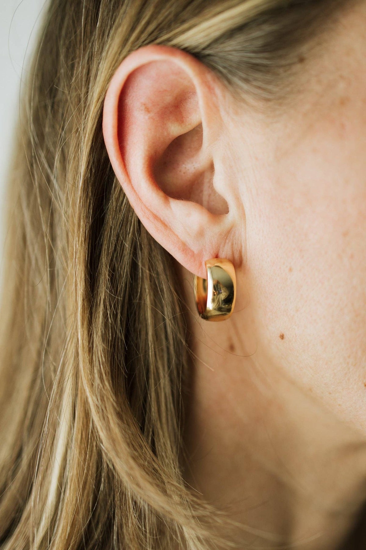 The Aura Hoops are bold yet beautifully lightweight, designed to make a statement without feeling heavy. Their softly rounded shape and warm gold tone offer an effortless polish—easy to wear, easy to love.