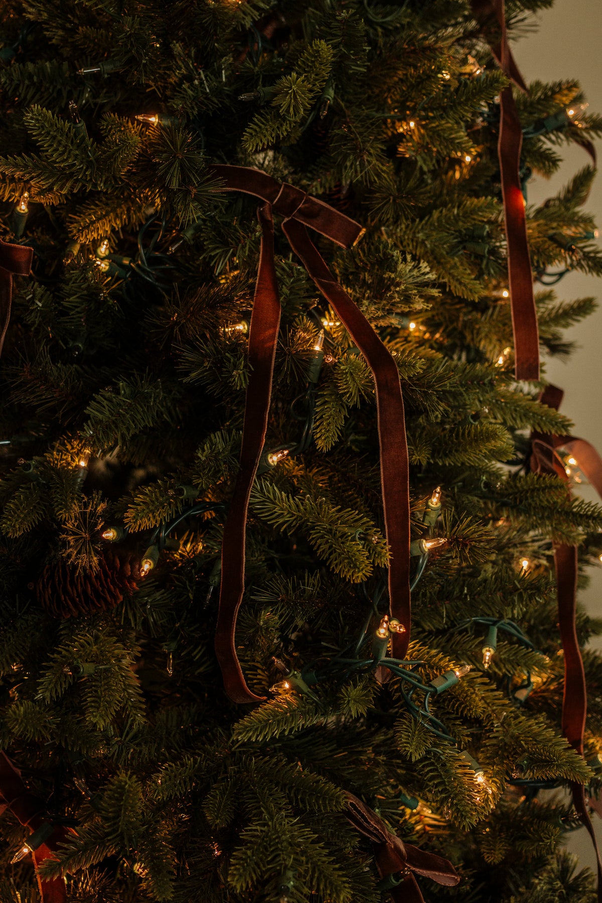 A simple finishing touch for trees, wreaths, or garlands. This slender velvet bow in deep brown is attached to a clip for easy styling wherever you want a soft, understated accent.
