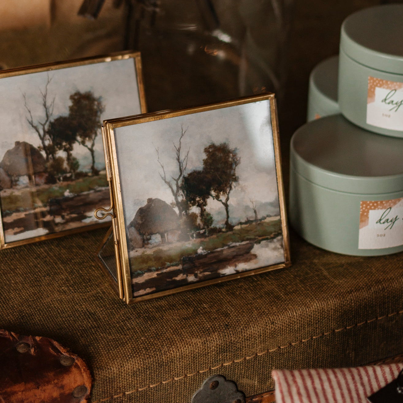 Handcrafted brass-and-glass frames designed to create a subtle “floating” effect. Minimalist yet warm, they bring an artful touch to photographs, pressed flowers, or keepsakes. Perfect layered on a shelf, placed on a desk, or standing on a mantel, they’re a timeless way to keep your moments close.