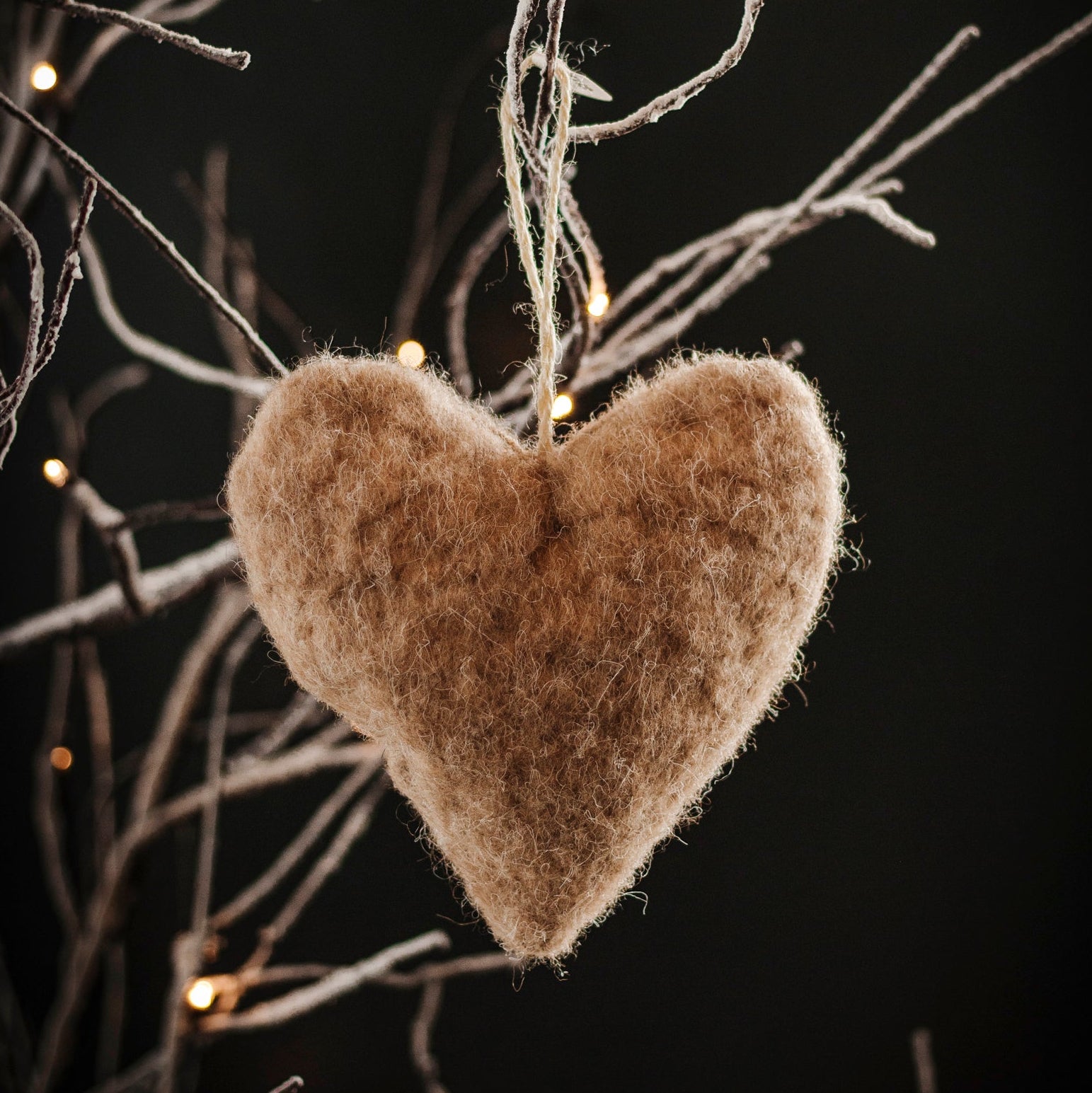 Soft, rustic, and a little whimsical, this pair of warm brown felt ornaments adds an earthy, woodland touch to your holiday decor. The cozy heart brings a nostalgic sweetness, while the tree adds a playful, nature-inspired moment. Beautiful individually or styled together.