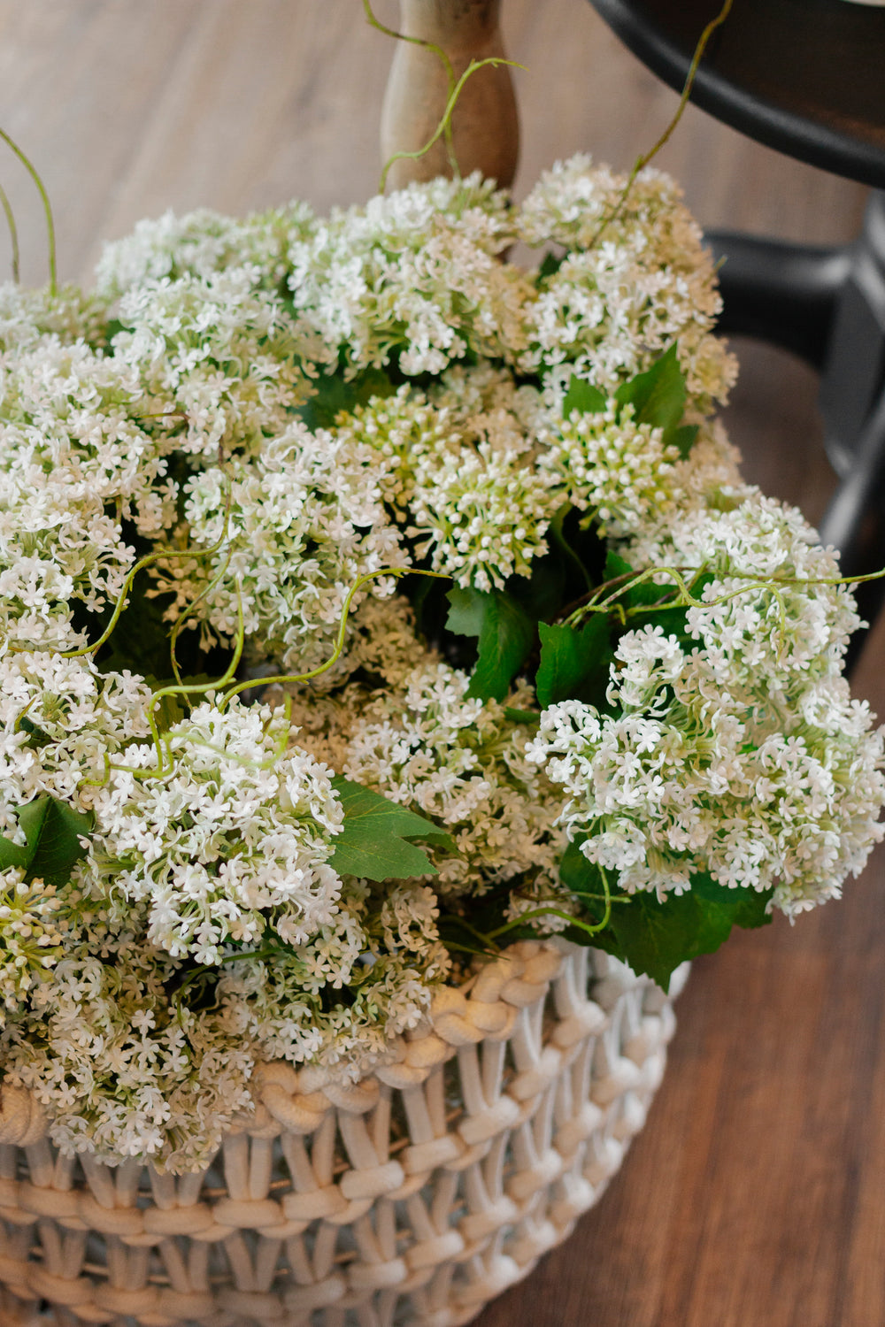 Full of texture and charm, this faux Snowball Viburnum stem brings the look of freshly snipped garden blooms—without the upkeep. With soft ivory clusters and leafy greens, it’s an easy way to add a natural touch to any arrangement or vessel.