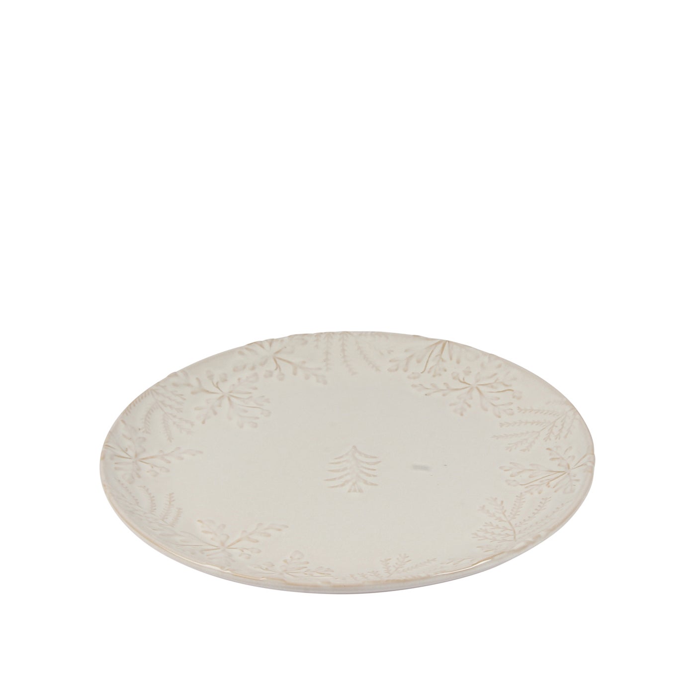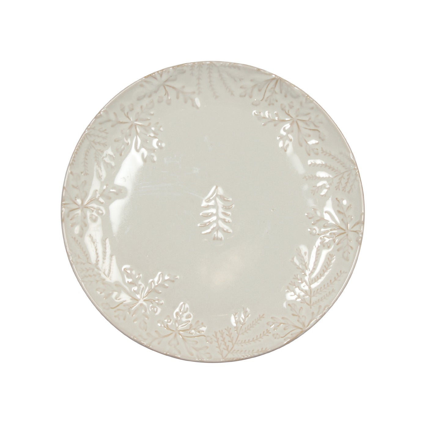 A wide stoneware server detailed with a border of snowflakes and evergreen branches. Generous in size, it’s perfect for cookies, appetizers, or displaying festive desserts. The soft ivory glaze makes it versatile enough to pair with everyday dishes or holiday favorites.