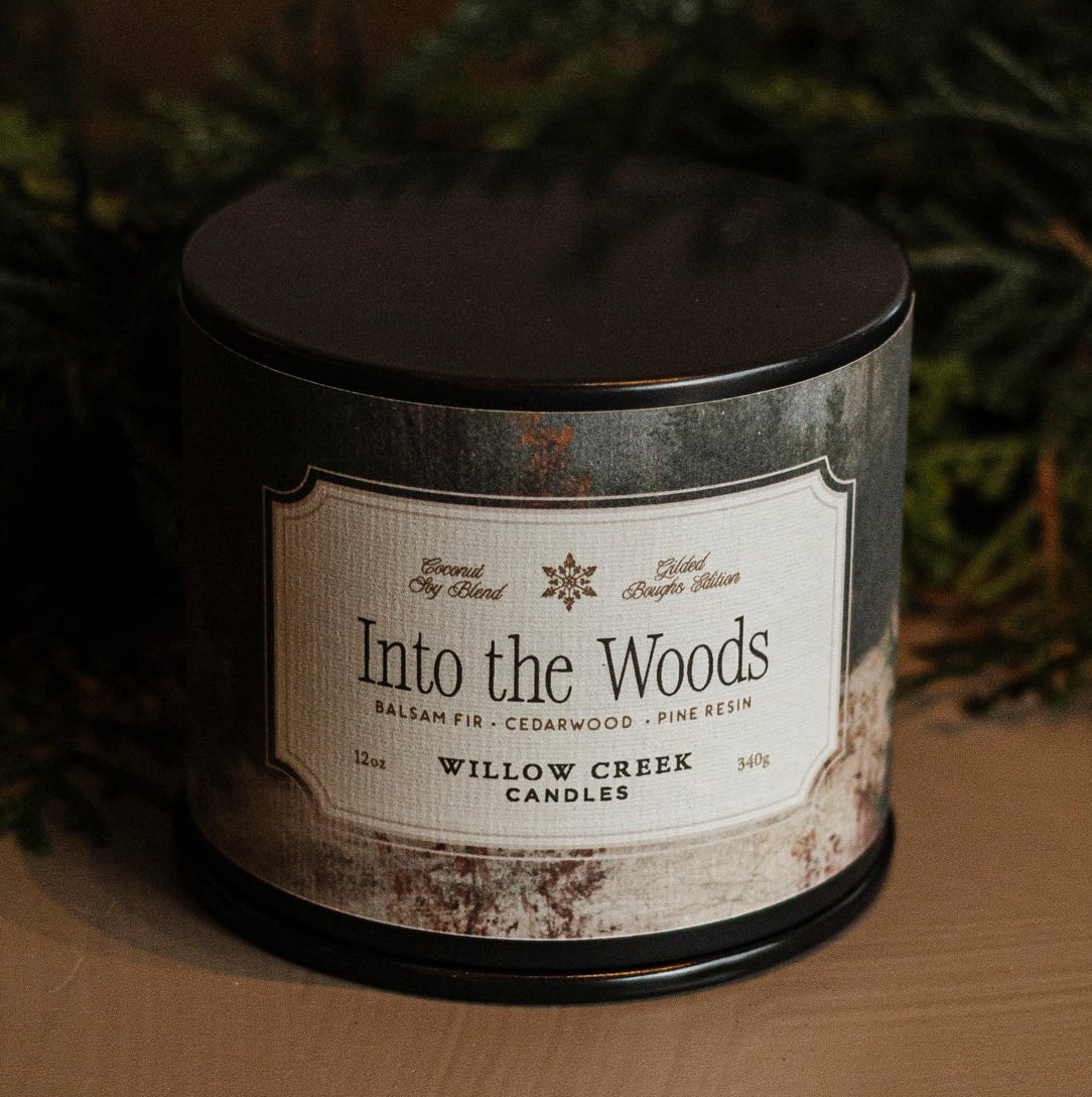 Cool, grounding, and quietly restorative. Into the Woods captures the stillness of winter evergreens — balsam fir, cedarwood, and pine resin layered in a scent that feels fresh and calm, never sharp or heavy. It’s the breath of cold air that clears the room, the quiet after snowfall, the kind of scent that resets a space and steadies the mind.