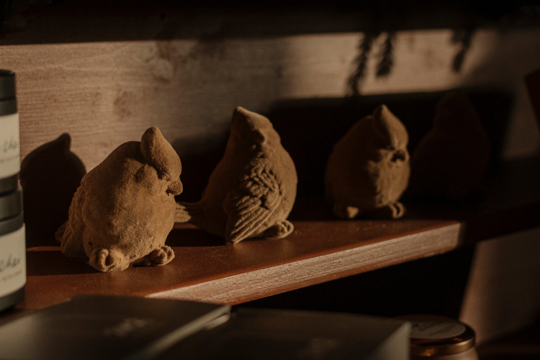 A small bird figure with a soft flocked surface in a muted taupe tone. Simple in shape and easy to place among branches, bookshelves, or table arrangements. A subtle winter touch that doesn’t draw attention.